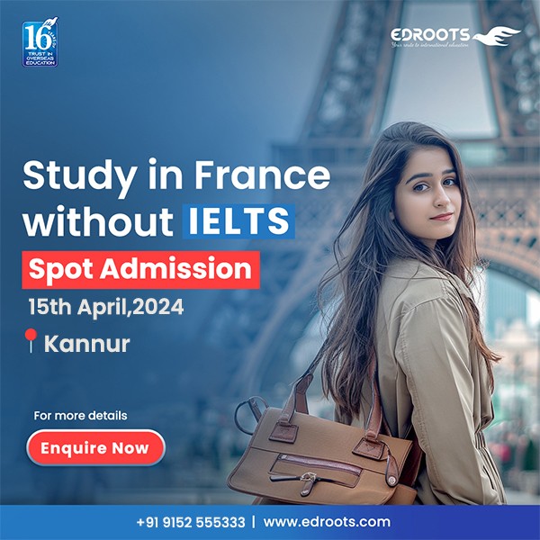 Attend the Admission Day 2024 conducted by Edroots International in Kannur, interact with university delegates and study in France with scholarship!